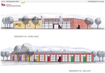 The building consists of three parts: the curved main activity room block which is designed to take advantage of the solar orientation, the utility block containing the functional rooms, and a central multi-use area connecting them with one another. The multi-use area also doubles as an interior play area during inclement weather.