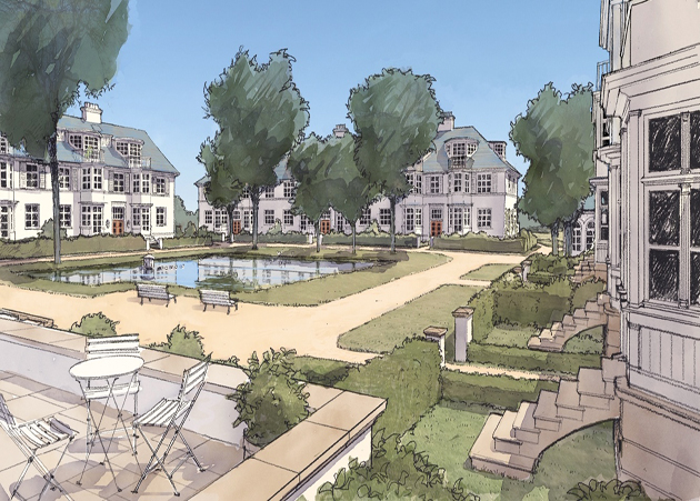 Als Teil der Planung für ein neues Golfclubhaus wurde eine Bebauung mit Ferienwohnungen um einen Hof mit einem traditionellen Ententeich arrangiert. In vier Gebäuden unterschiedlicher Größe werden insgesamt 72 Ferienwohnungen erstellt, von denen 16 rollstuhlgerecht geplant wurden.