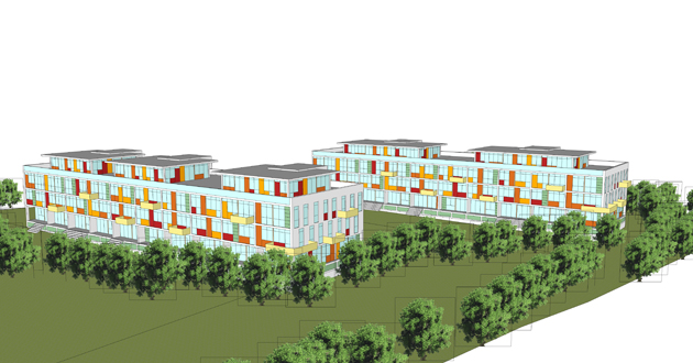 The two, long, existing 4-storey buildings had housed students and nurses. Erected in the 1960’s, they stood vacant for many years and had suffered irreversible damage.