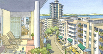 The community itself has a simple urban structure, with three primary entrances, one of which is a continuation of nearby Galata’s main street. The blocks are designed to correspond with the site’s unique topography, and and the urban fabric is comprised of long, thin blocks, meandering along the site’s hills and ridges. Designed as an amphitheater of buildings facing the sea, the streets are aligned along the slopes, providing unobstructed views to the north and good sun exposure to the south. Three pedestrian "vertical" parks connect the streets from south to north and create a series of dramatic public terraces and balconies which open to the views, similar to those found in San Francisco, Genoa, Valparaiso, and Balchik, a small town north of the site. These vertical parks each have their own character specific to their location, with the most "urban" park located closest to the main street, and the most naturalistic offering direct views of the sea.